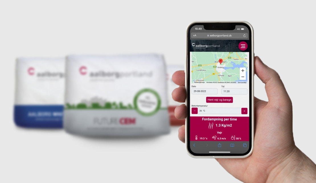Aalborg Portlands fordampningsberegner giver dig en indikation på, hvor meget vand der fordampes i de aktuelle vejrforhold, du støber i.