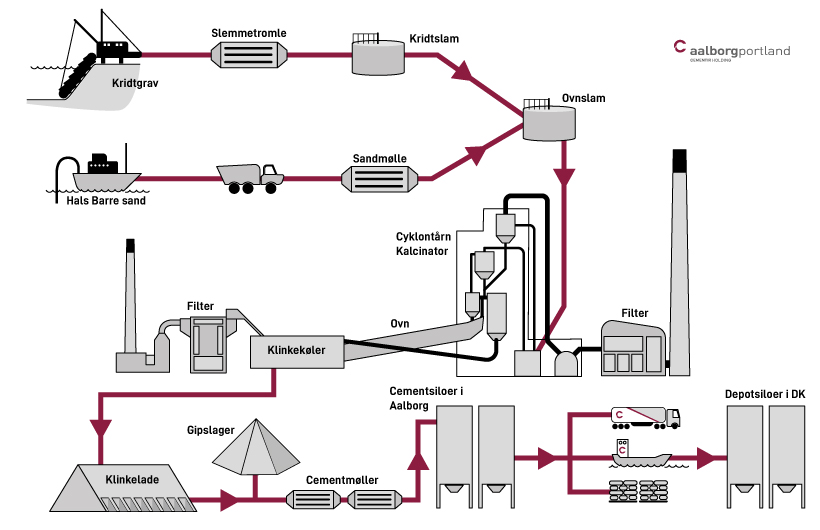 Det vigtigste råstof ved produktion af cement er kridt. Cement oftest er en brændt og formalet blanding af kridt og sand. Aalborg Portlands forekomster af 70 millioner år gammelt kridt er på grund af dets usædvanlige renhed og ensartethed velegnet til at fremstille af alle cementtyper.